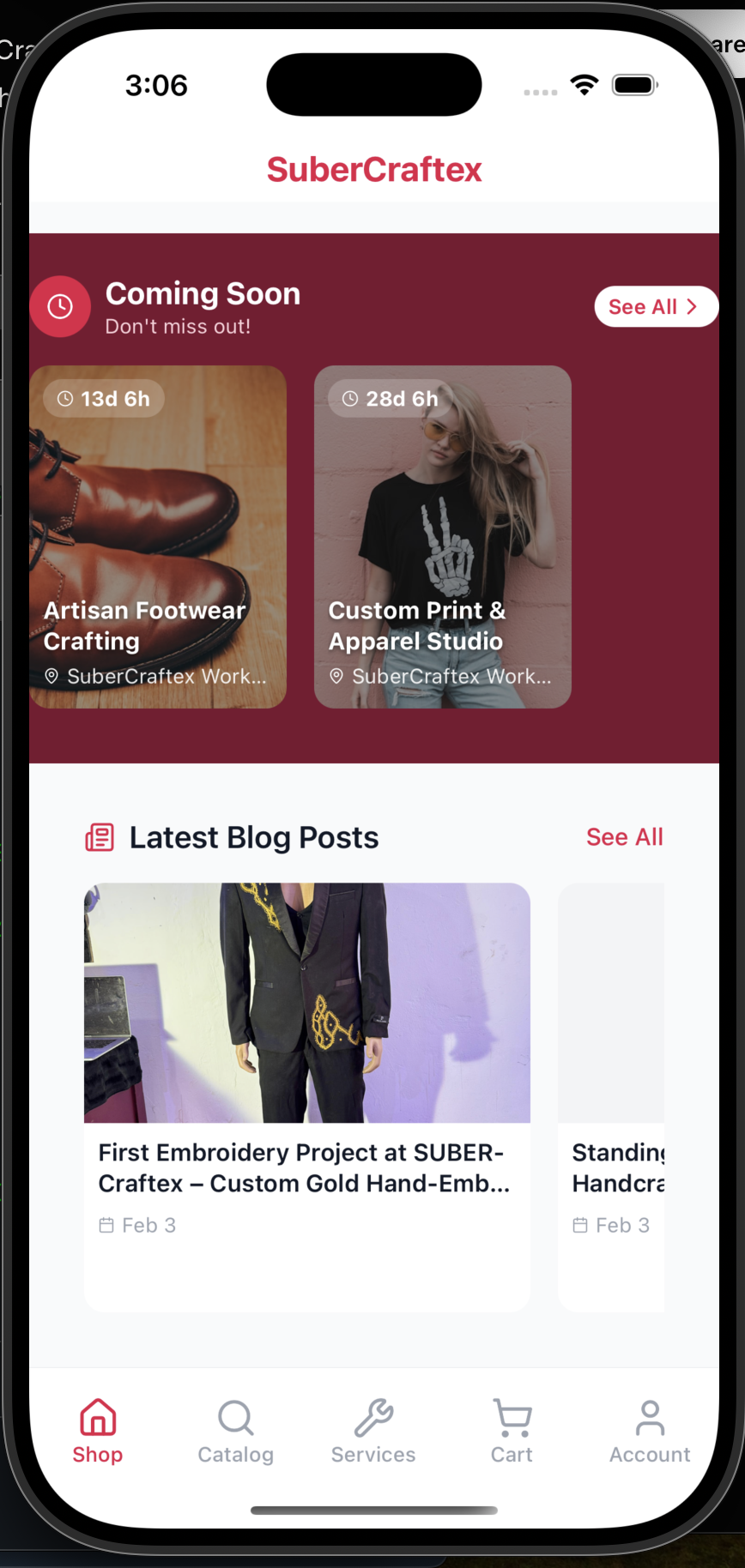 The SuberCraftex app is designed with you in mind - clean, intuitive, and fast. Whether you're shopping for the latest styles or commissioning a custom piece, we've made the experience seamless.