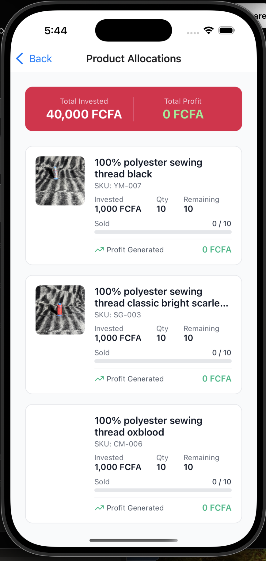 Browse our complete catalog of ready-to-wear fashion pieces, accessories, and fabrics. Filter by category, price, or style to find exactly what you're looking for. Add items to your cart and checkout securely - all within the app.