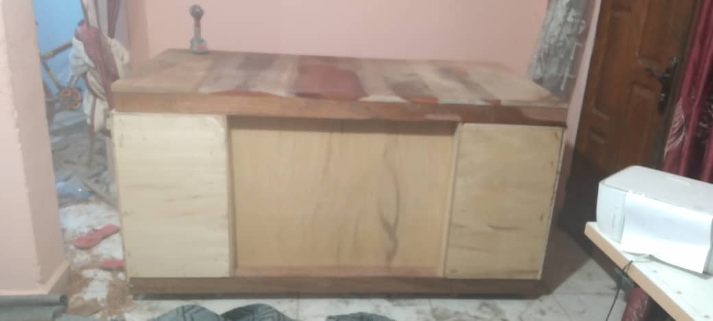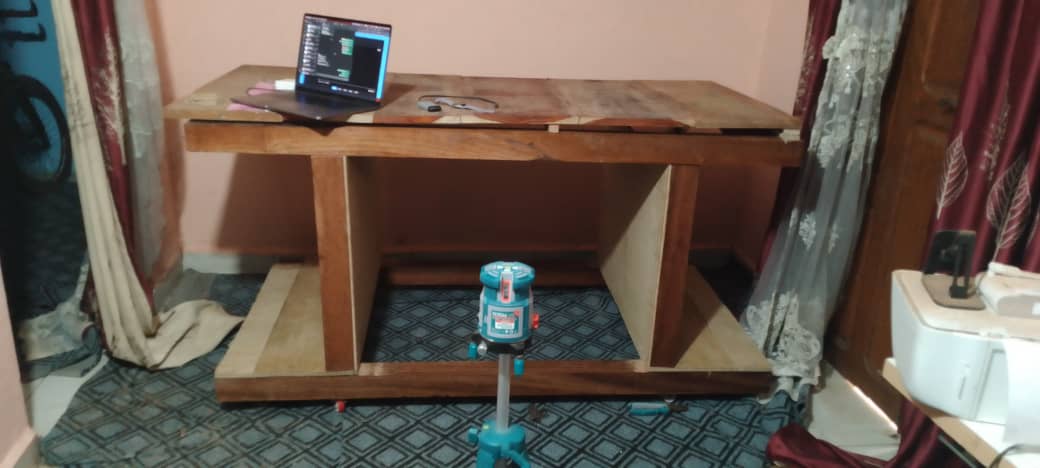 The solid structure provides a stable and dependable surface for precision work, while the wood finish brings warmth and personality into the workspace. Every cut, joint, and finish was done with intention — not just to build a tool, but to build a symbol of our beginning.